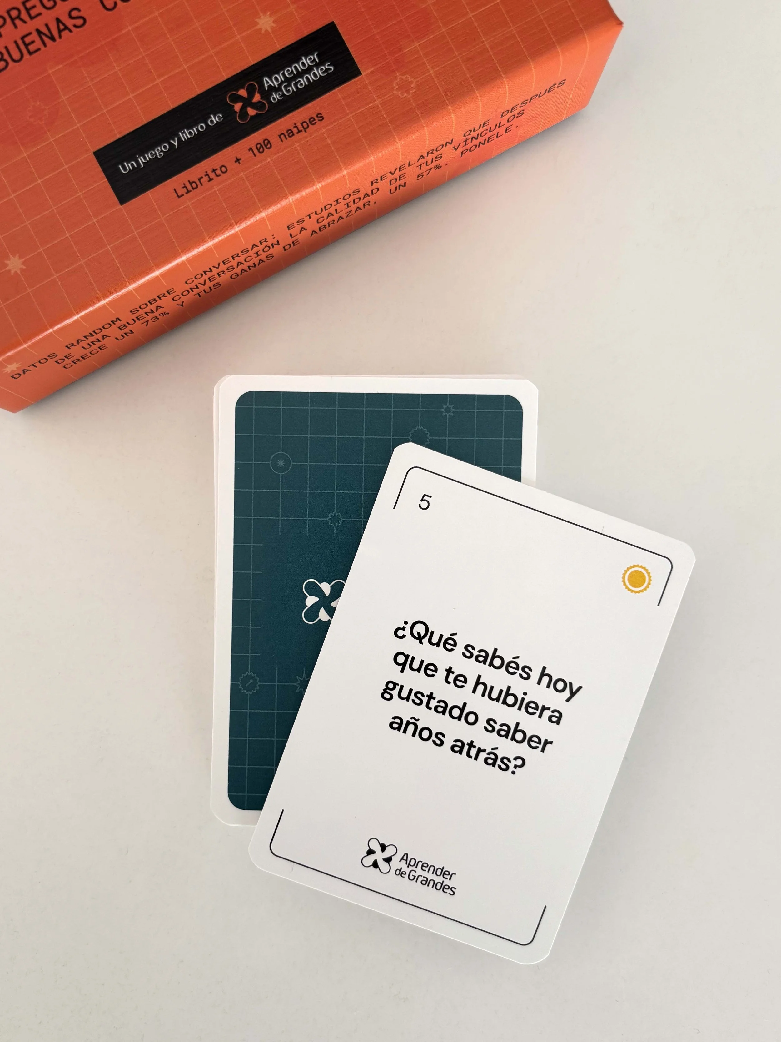 El objetivo de este juego de naipes de Aprender de Grandes es disparar conversaciones para conocer en mayor profundidad a la gente con la que jugamos.
